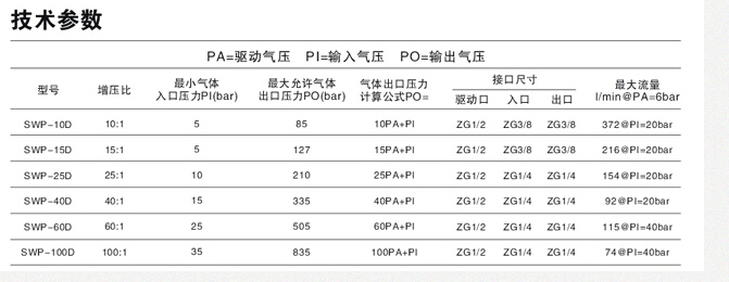 使用方便:无需任何电源,利用压缩空气作为动力源对压缩空气进行增压,使出口压力达到N倍进气压压力。通过调整进气压力,可以很方便地获得所需压力。自动保压:当出口压力达到预设定压力值时,空气增压阀自动停止工作,节约能源;当出口压力低于预设定压力值时,自动补压,保持压力恒定,保压时无额外能量消耗,环保节能。